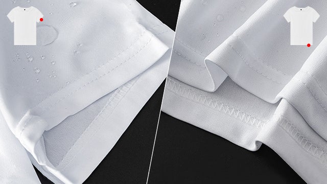 本製品の撥水効果の特徴として、生地に付着した液体に圧力をかけると撥水力が低下する場合があります。Tシャツに液状の汚れが付着した際は、ティッシュ等で吸い取るようにふき取ることをお勧めしております。