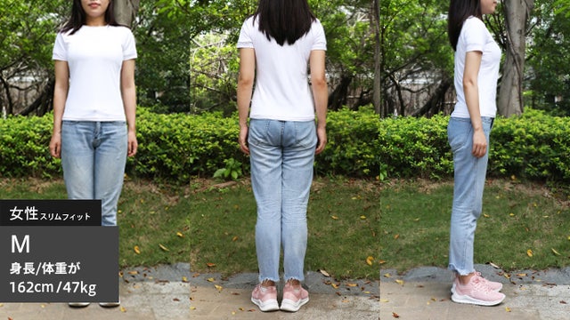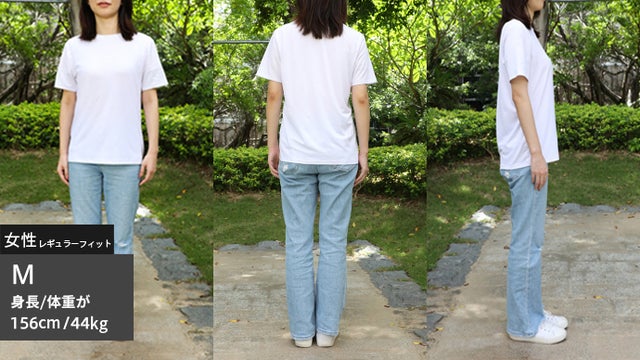 サイズ展開は男性レギュラーフィット、女性レギュラーフィット、女性スリムフィットの3サイズをご用意しています。