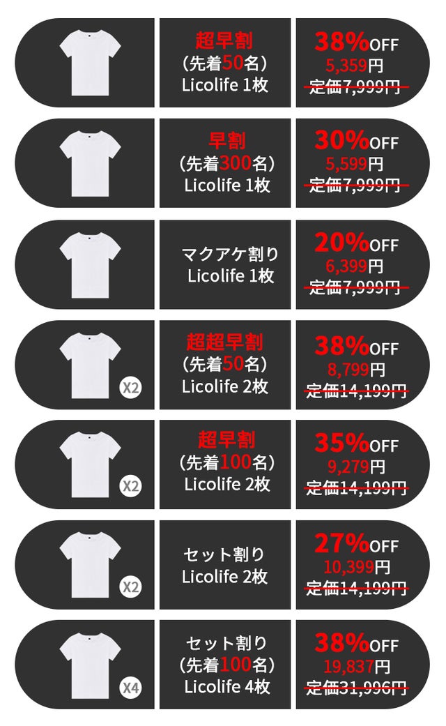【早割り 38%OFF】LicolifeTシャツ4枚 先着100名様限定