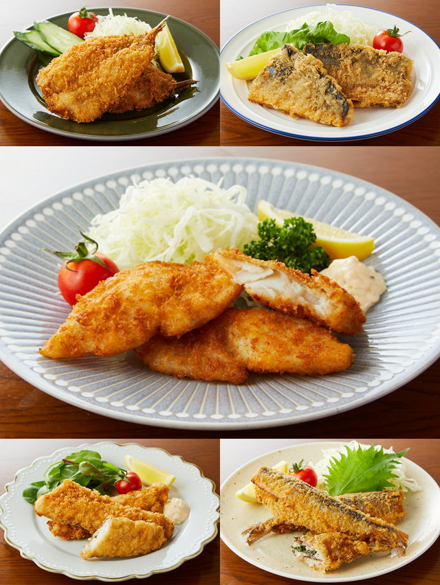 ●セット内容/1:白身フライ(4切)、2:日本近海イワシフライ(4尾)、3:大葉梅しそ入りイワシフライ(4尾)、4:宮城県産サバフライ(4切)、5:北海道産 真ホッケフライ(4切)、5:下関産のどぐろフライ(4尾)