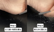 ↑ 大粒子の面で硬くて厚い層を削り、中粒子の面で表面を整えれば、濡らさずあっという間につるすべかかとに生まれ変わります★