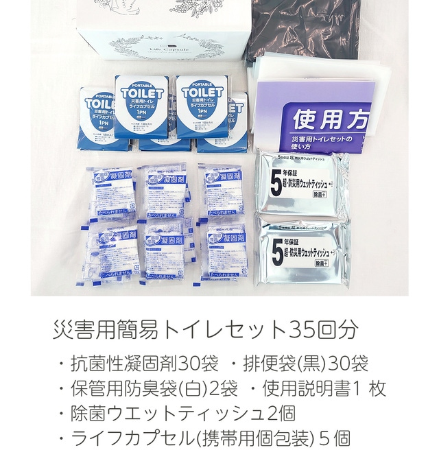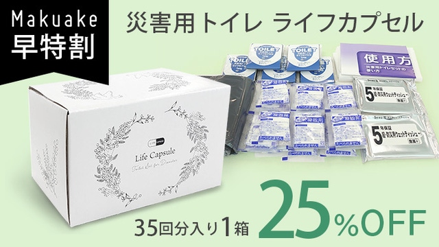家族2人で約3日分、1人で約1週間分のトイレを詰め込んだ、完成品1個のリターンです。一つお家に飾っておくだけでいざという日に活躍します。