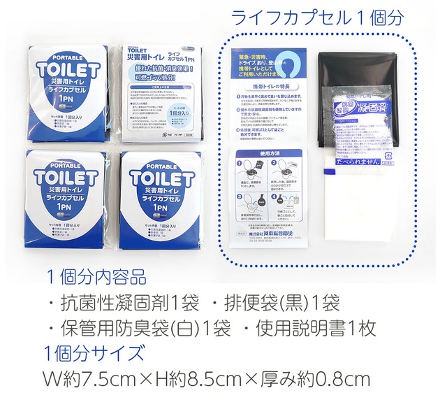 Life Capsuleは、ご家庭のトイレに備蓄しやすい [サイズ]と[見た目] にこだわった、非常用簡易トイレセットです。