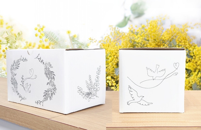 デザイン案を複数製作し検討を重ねた結果、ナチュラルテイストとして人気のあるモチーフ「ミモザ」柄に決定。
