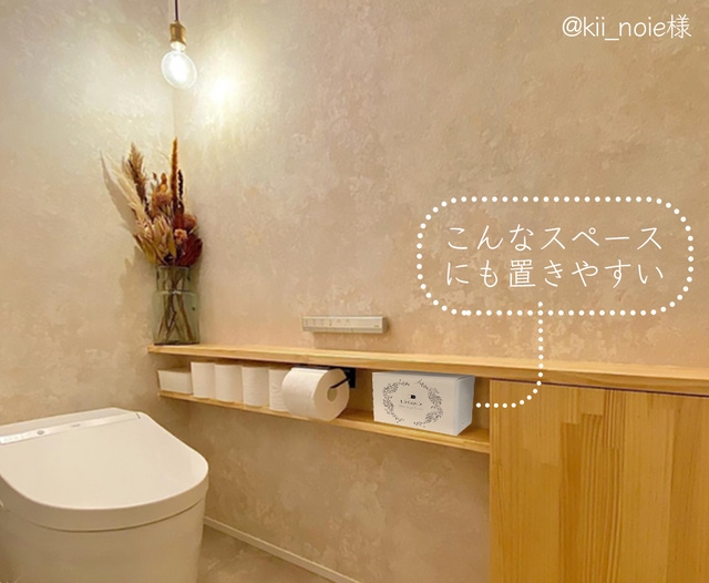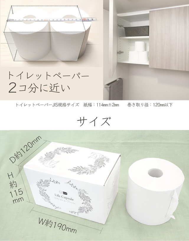 - 家庭のトイレに備蓄しやすい [サイズ] と [見た目] にこだわりました。