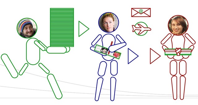 ワレーリアが撮影した写真のポストカードにサインを添えて送ります。
