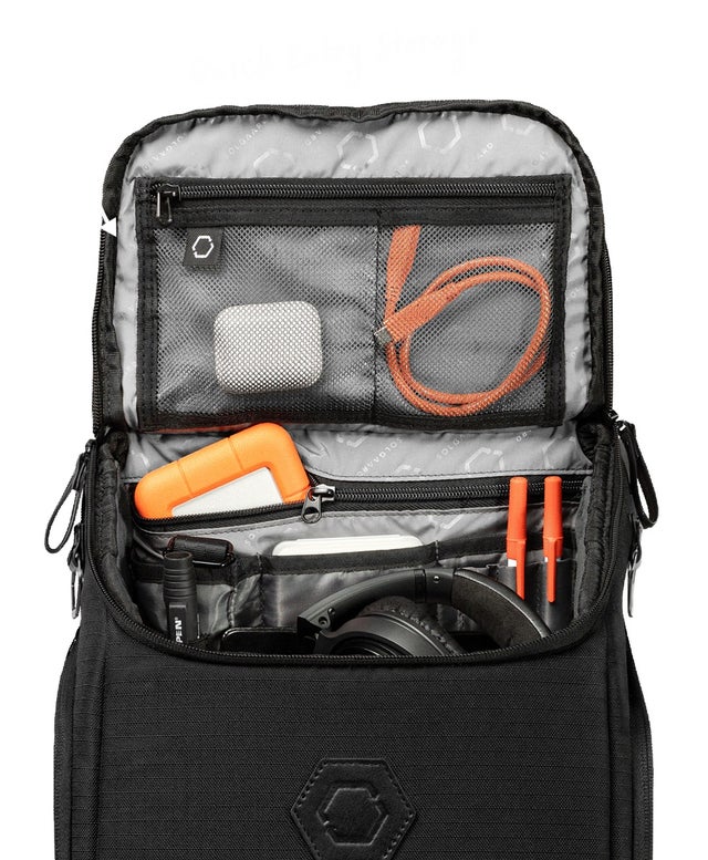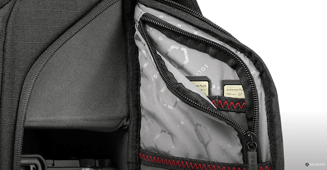ジッパーを開けるとメモリースティックやSDカードを入れる小さなポケットがあり、クリエイターにとって必要な機能を備えてます。