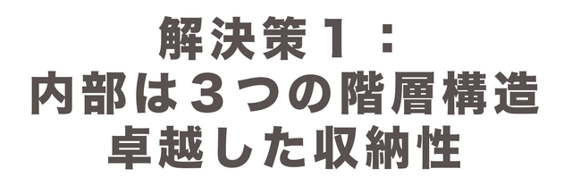 - 内部を1〜3階層へ区分けが可能。階層分けしたルームへ、シーンに合わせて自由に収納