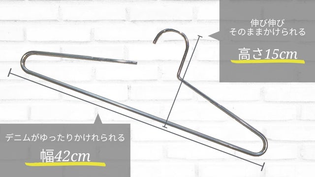 - デニムもゆったりかけられる幅42㎝、高さ15㎝。スチール製で丈夫で長く使える。