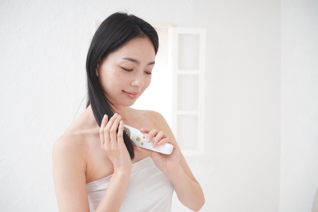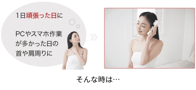 PC作業や長時間のスマホ、家事などで首・肩周りを酷使した日はスカルプ・ヘアモードの出番!ブラシ型のアタッチメントでじっくりケアするのがおすすめ!