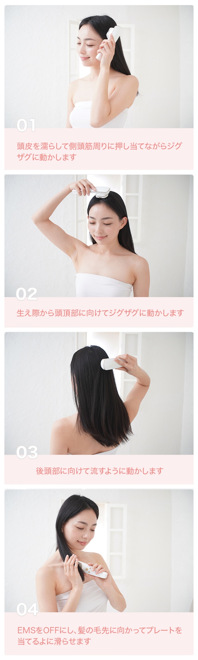 ※EMS微電流はOFFにした上でヘアケアを行ってください。