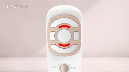 まずはスカルプ・ヘアモードで頭皮をケア。頭皮のケアが終わったらフェイスモードでフェイスラインをケア。2つのモードで表情筋を刺激!