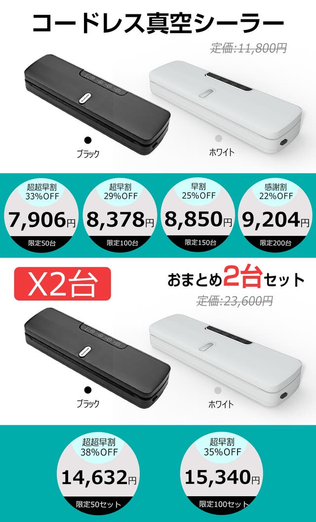 【50セット限定 おまとめ2台セット 超超早割】コードレス真空シーラー×2