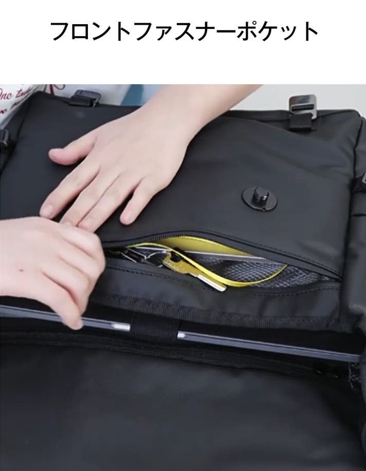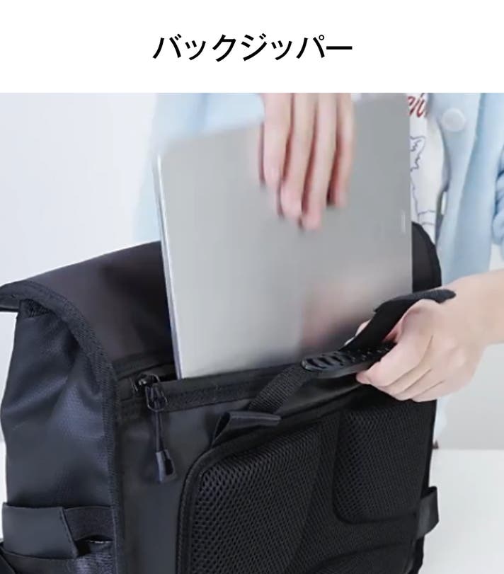 バッグ背面部(体に接する面)にジッパーが設計されており、メインコンパートメントが直接開き、バッグの中身にアクセスしやすくなっています。 飛行機に搭乗する際、裏側から直接航空券などの荷物が取れるので慌てずに迅速な対応ができます。 バッグの中にアクセスしやすい設計なので外出時でも非常に便利な機能となります。