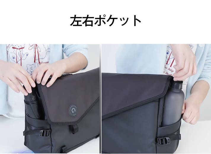 左右のサイドポケットは傘や水筒の収納に最適です。素早く簡単にアクセスできます。