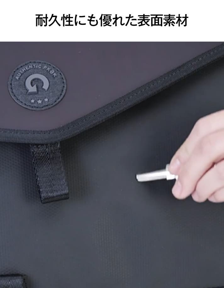 特殊な撥水コーティングを施したポリエステル素材で作られており、突然の雨や水濡れからバッグ内の荷物を守ります。