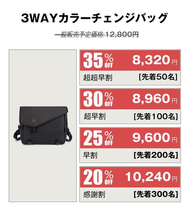 【超超早割・35%OFF】3WAYカラーチェンジバッグx1