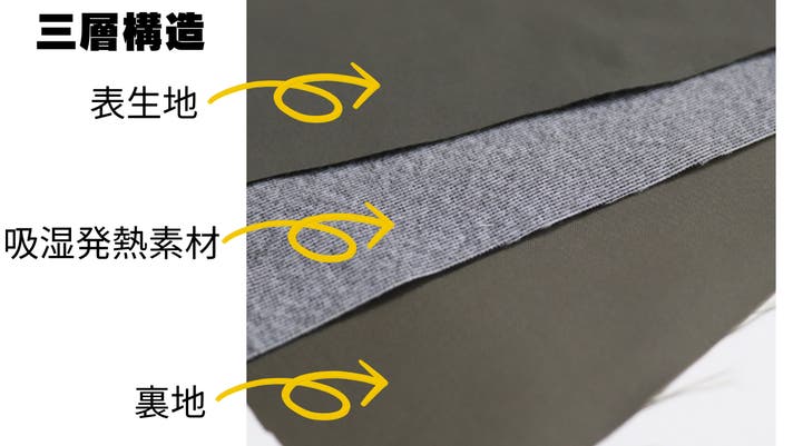 衣服内の湿度によって最大2℃、温度が上昇するという優れもの。