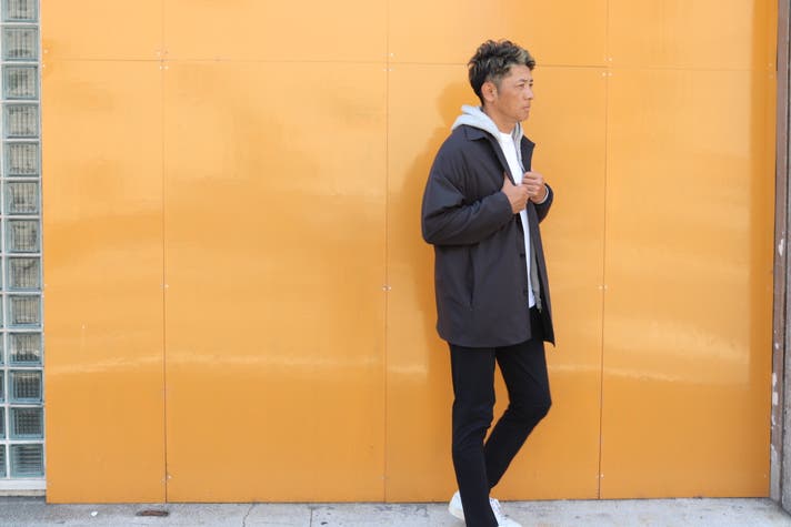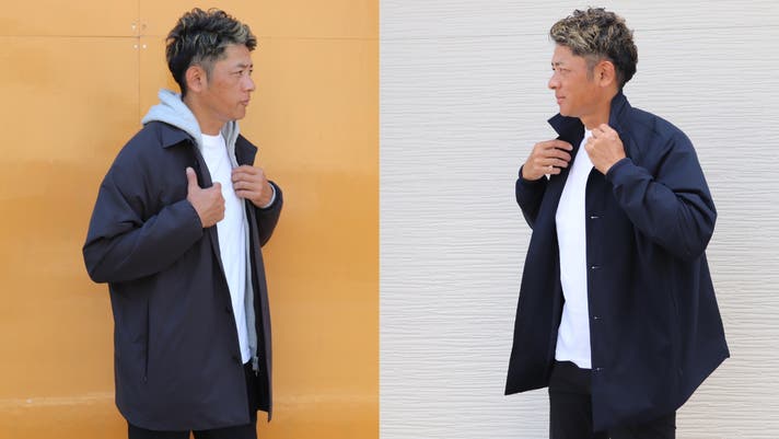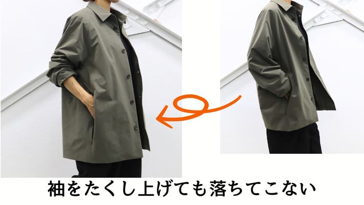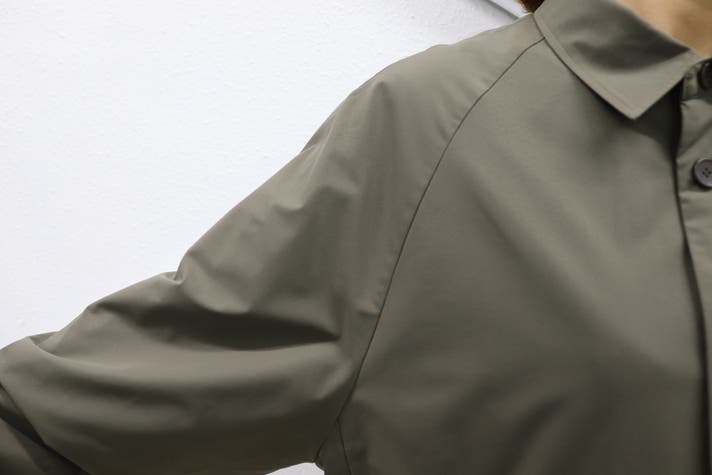 - 吸湿発熱機能素材ををインサートした薄くて軽い シャツ型コート