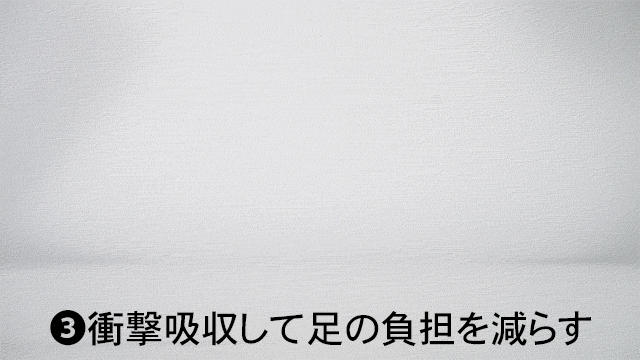 これは人間工学に基づいたデザインで、足を踏み込んだ時に衝撃を緩和して前へ進む推進力へと変えてくれます。