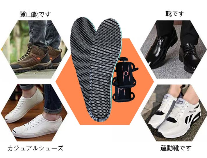 - グラフェン加熱インソール = 取り外し可能な移動式ヒーター + 靴型アダプター