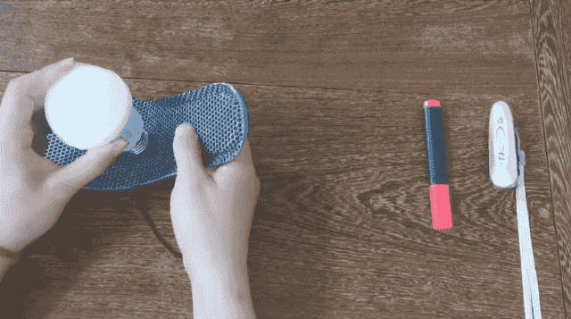 • キャンプ終了? バッテリーボックスを外せば、インソールは普通のクッションに。帰宅後はスニーカーに入れてランニング。