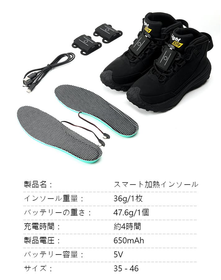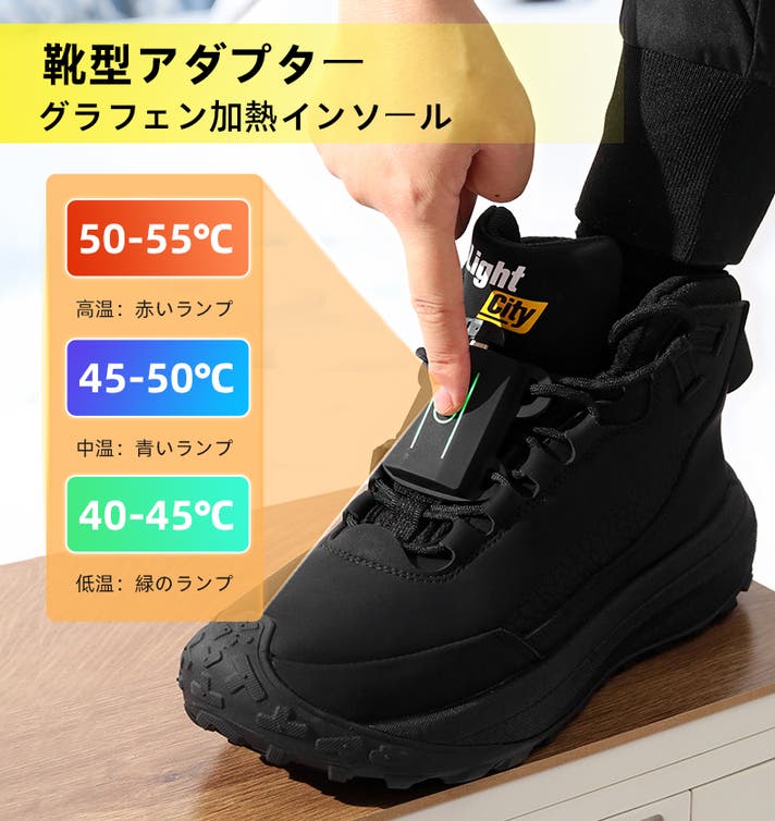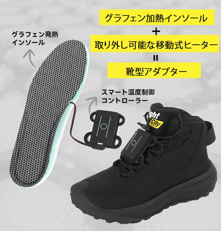 LIGHTCITY グラフェン加熱インソール = 取り外し可能な移動式ヒーター+ 靴型アダプター。