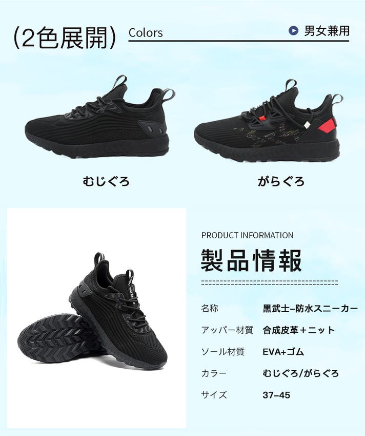 我々は全ての余分な色彩を排除し、全体を漆黒とし、シャープなライン。黒武士は、ミニマルでダークな美学であなたのファッションセンスを宣言します。従来の防水靴の重厚なイメージを打ち破り、防汚・防水、通気性、滑り止め、そしてスタイリッシュさをに融合させました。暴雨の中の通勤でも、アウトドアアドベンチャーでも、日常のコーディネートでも、それはあなたの足元で最も目を引く「見えない鎧」となるでしょう。