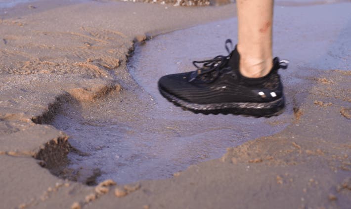 超臨界発泡EVAミッドソールにより、効果的に向上。