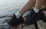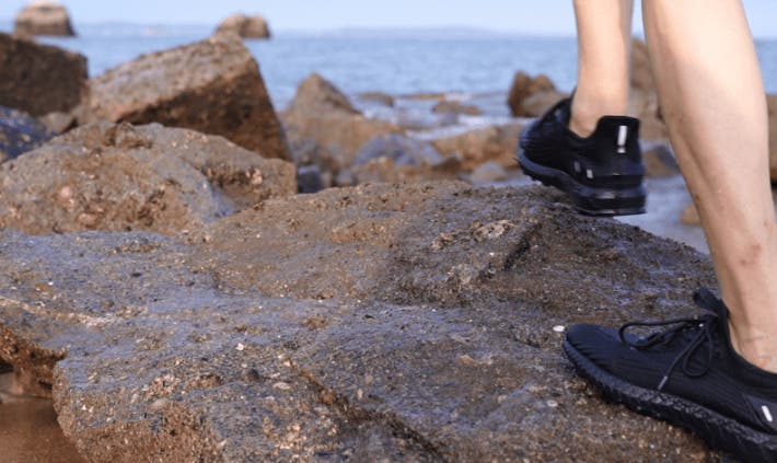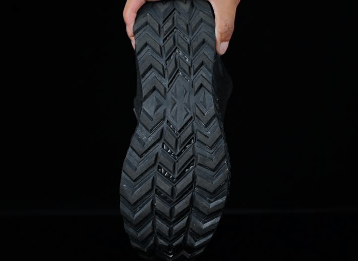 クロスカントリータイヤからインスピレーションを得た鋸歯状のアウトソールは、多方向グリップパターンと組み合わせ、登山や川溯りでも岩のように安定しています。雨の日後の滑りやすい路面でも、大丈夫。