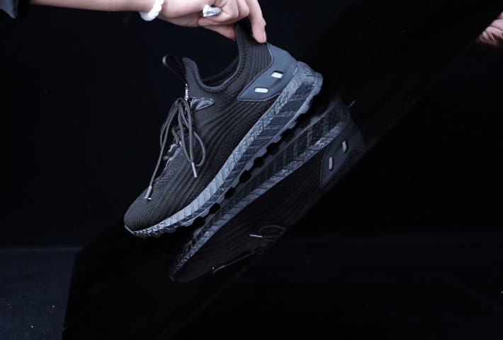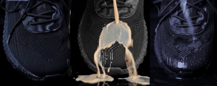 アッパー表面は、ポリエステルとナイロンの混紡によるストレッチ性のある編み生地を採用し、特殊なニット技術と組み合わせることで、撥水表面を形成。雨水と汚れは浸透しにくく、あたかも堅固な保護シールドが追加されたように、雨滴、塵。