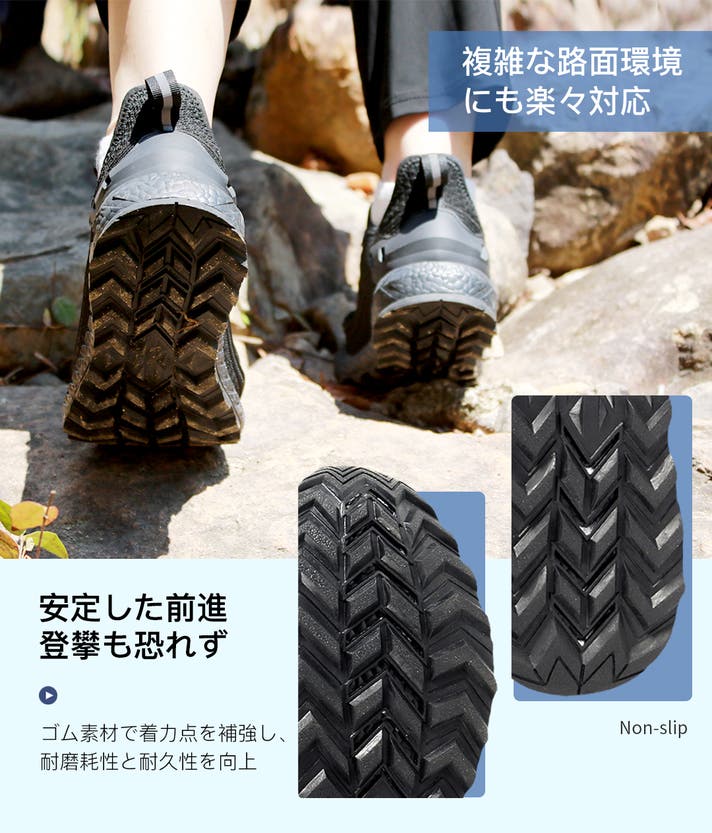 - 【衝撃吸収】全地形対応の防滑底と緩衝機能で都市から山岳まで快適歩行を実現