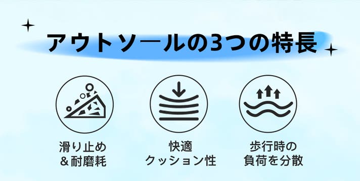 【衝撃吸収】全地形対応の防滑底と、緩衝機能で都市から山岳まで快適歩行を実現