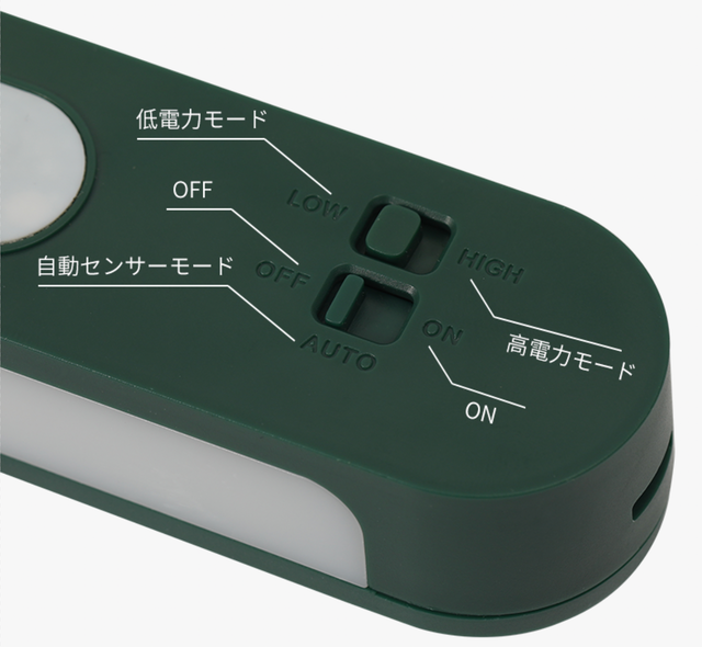 簡単操作でON/OFFと自動センサーモード、2つの光調整レベルを切替できます。