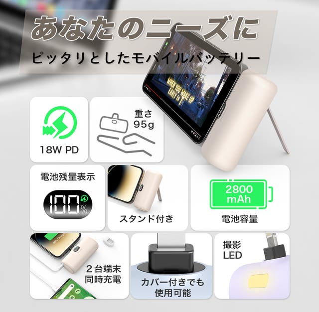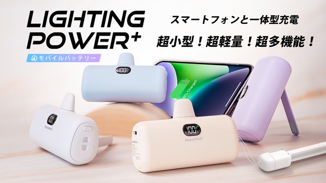 超小型に「スタント付き」、「2台同時充電」、「ストラップ兼充電ケーブル」、「撮影LED搭載」を集大成したモバイルバッテリー【LIGHTING POWER+】が日本初上陸!