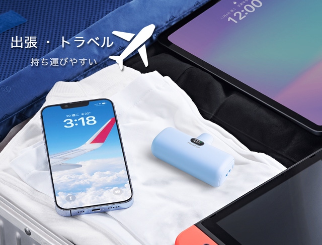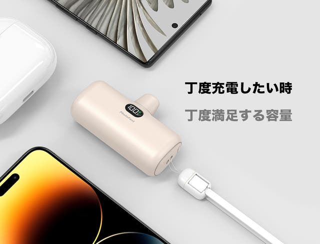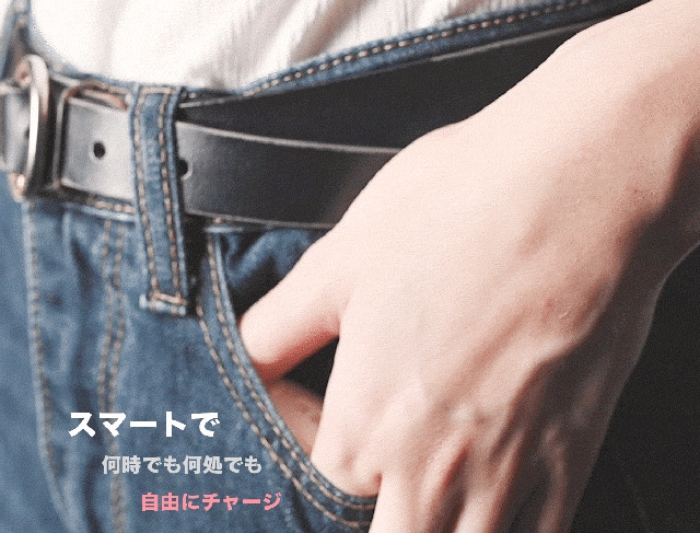- わずか8cmの超小型モバイルバッテリー。ポケットに収納可能で外出先でも安心。