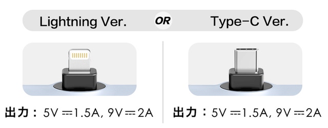 自分のスマートフォンの状況により、メイン充電端子は、LightningまたType-Cを自由に選ぶことができます。