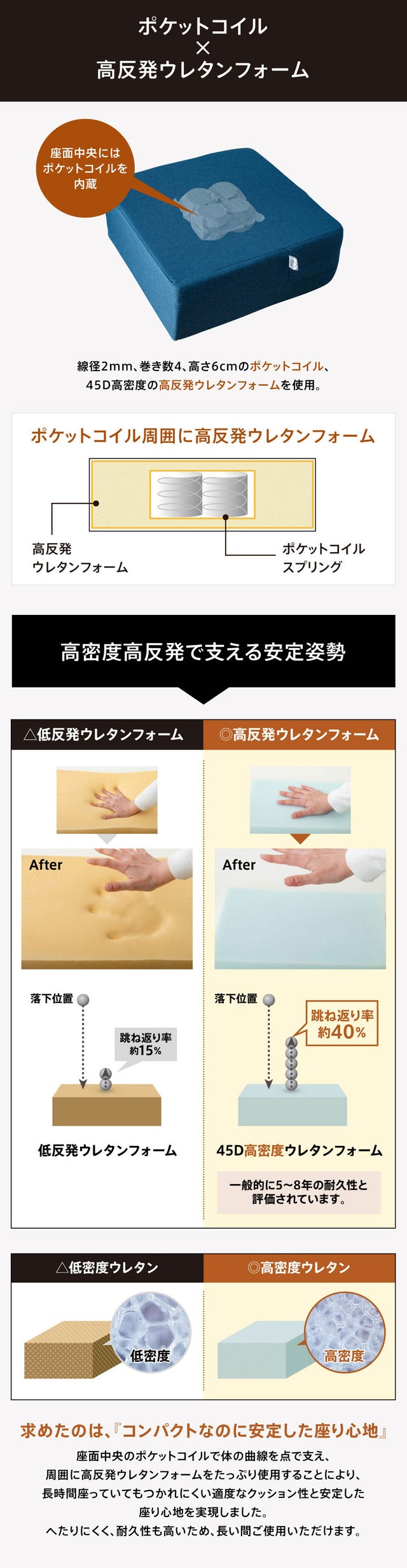 ポケットコイルイン高反発座布団クッション