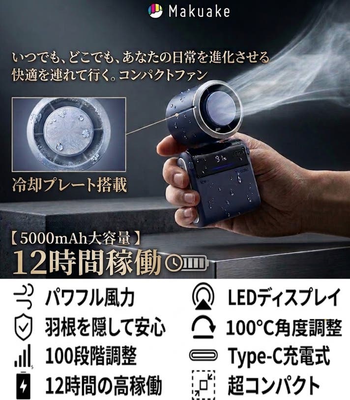 「Makuake(マクアケ)」は、実行者の想いを応援購入によって実現するアタラシイものやサービスのプラットフォームです。このページは、 プロダクトカテゴリの 「小型・軽量「9m/sの強力風」「冷却プレート」で猛暑を吹き飛ばすハンディファン」プロジェクト詳細ページです。