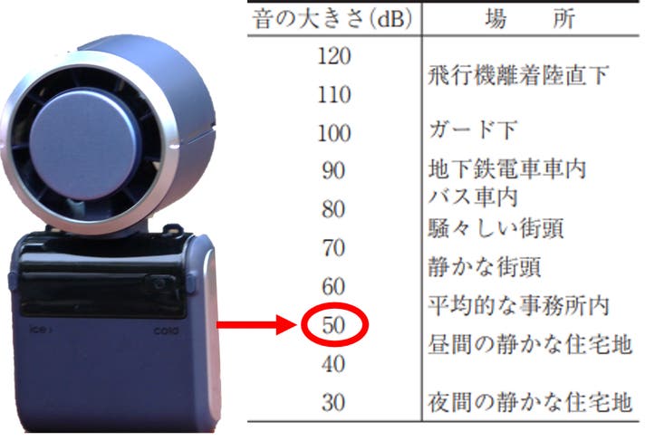 実際の使用時は本体と距離を離して使用するのでもっと送風音は下がります。