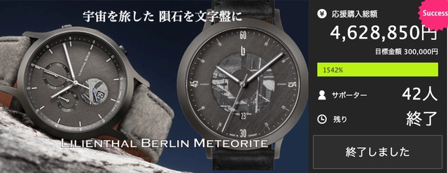 そのLilienthal Berlin の中でも本物の隕石を文字盤に使用したメテオライトは当時隕石を使用した文字盤は珍しかった為、とても話題になり好評を得ました。応援購入をしてくださいました皆様誠に有難うございました。
