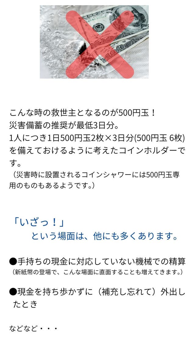 - 頻発する災害や「いざっ!」という時に備えるための小さなコインホルダー!