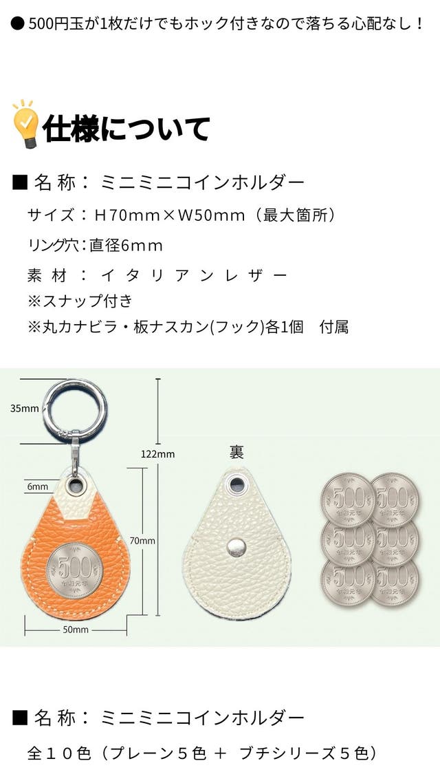 - 500円玉が6枚ぴったり収まり、ホックでしっかりホールドして落下の心配がない!