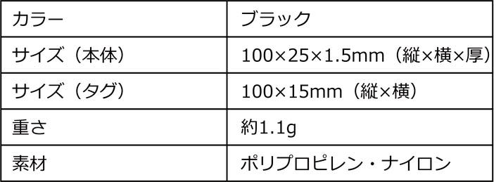 A4. カラーはブラック、サイズは10cmの長さで、一般的なケーブル整理に適した大きさとなっています。(※詳細はプロジェクトページをご覧ください)