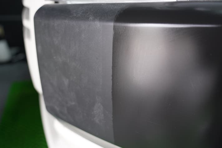 フェンダーやモール、ステップなどの未塗装樹脂が乾いて見えれば、輪郭がぼやけ、車全体が古く見える。