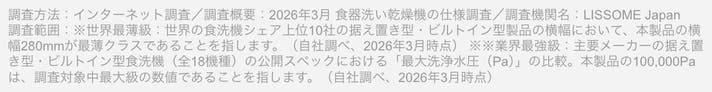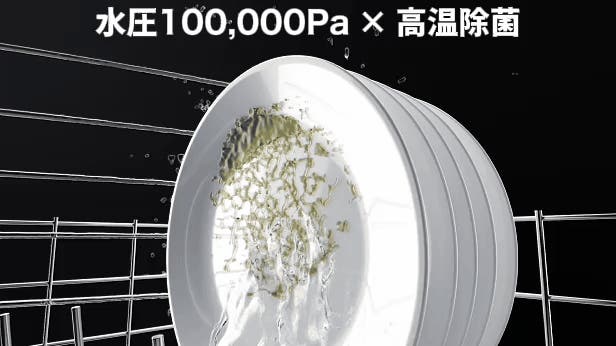 ※2026年2月時点、自社調べ。※従来の食洗機の水圧を30,000Paとした場合。