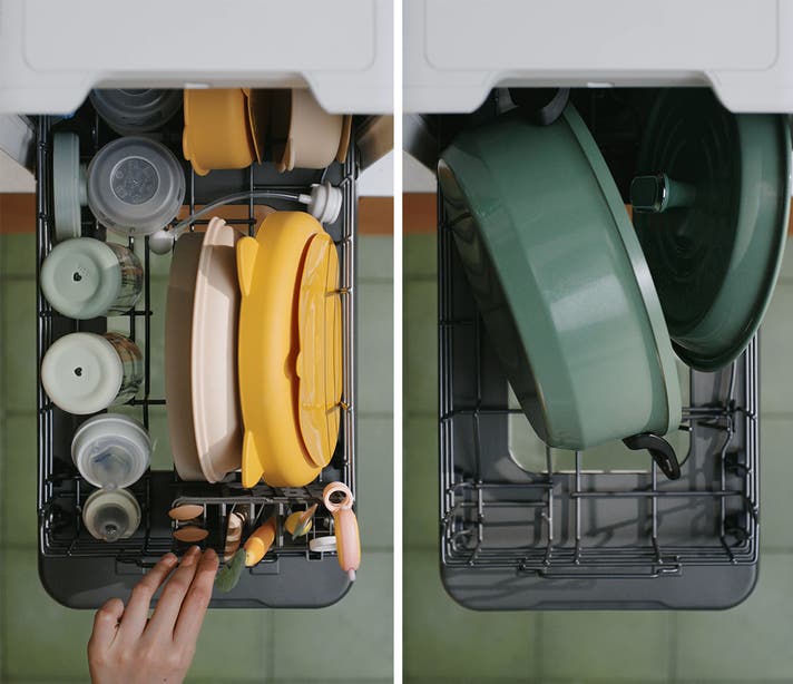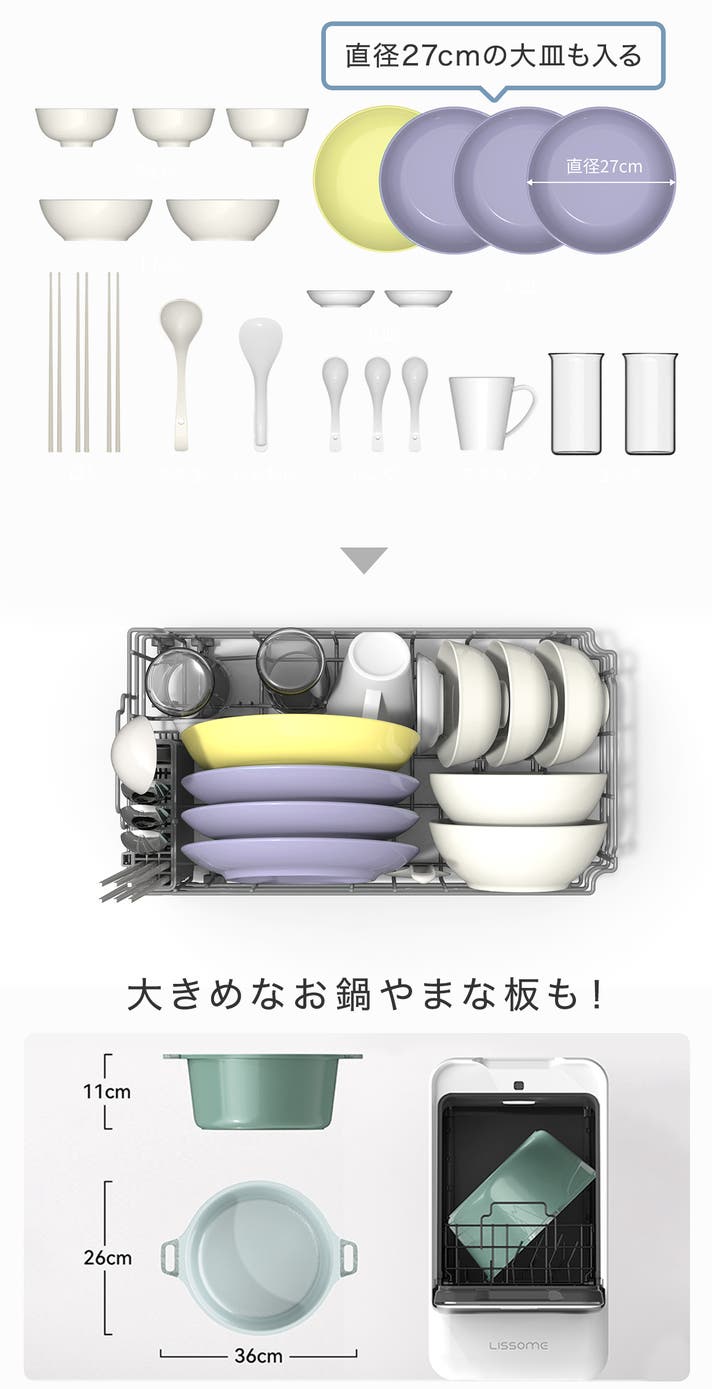 自社従来品よりも幅を約50%もカット。なのに、最大22点の食器が一度に片付く大容量!家族形態が変わっても末長くご愛用頂けます。