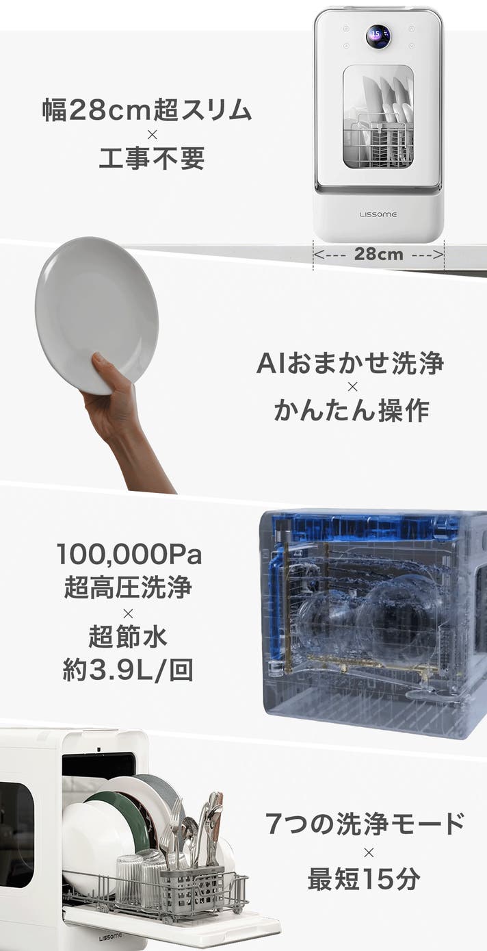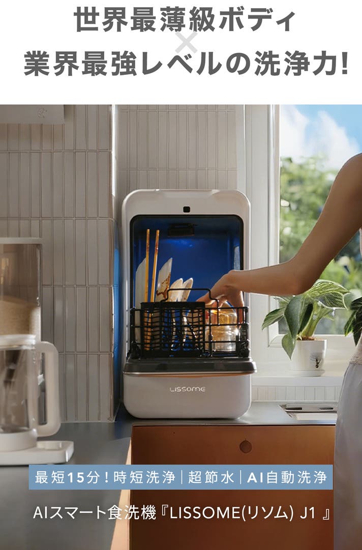 「Makuake(マクアケ)」は、実行者の想いを応援購入によって実現するアタラシイものやサービスのプラットフォームです。このページは、 プロダクトカテゴリの 「世界最薄級ボディ。AIスマート食洗機「LISSOME(リソム) J1 」」プロジェクト詳細ページです。