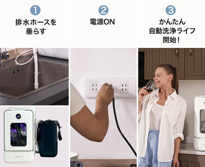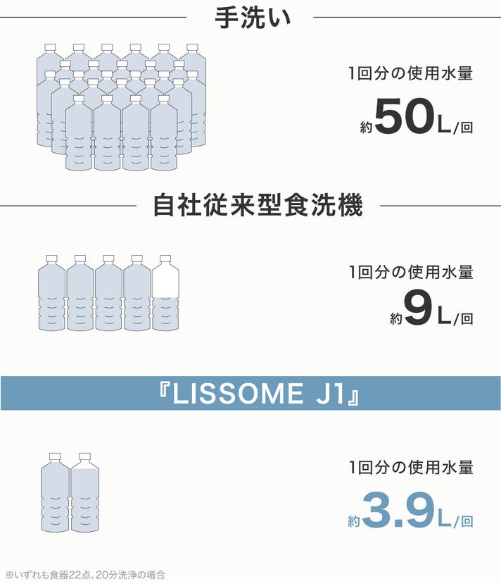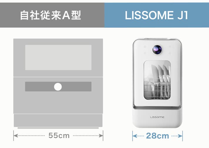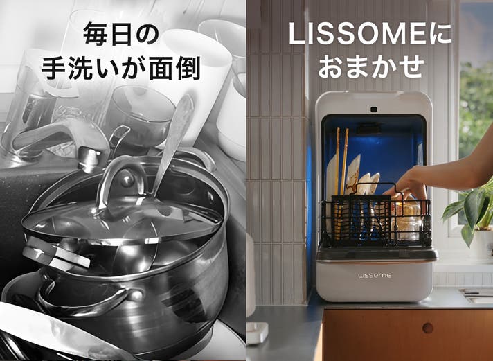 LISSOMEは、自社従来の食洗機には設置工事や場所、導入費用、洗浄力不足など、高いハードルがある現実に着目。