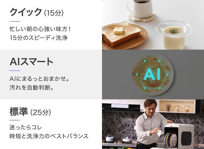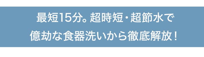 - 最短15分で完了!「毎日にゆとりが生まれる」超高速洗浄!